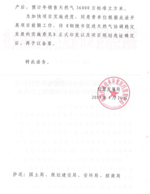 建设周期:10个月。可以为铜陵市提供5天的用气保障