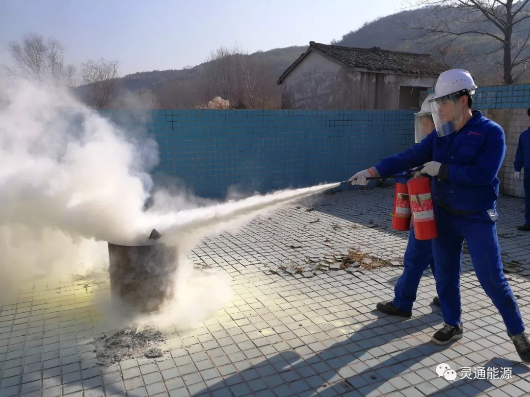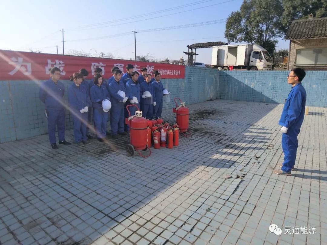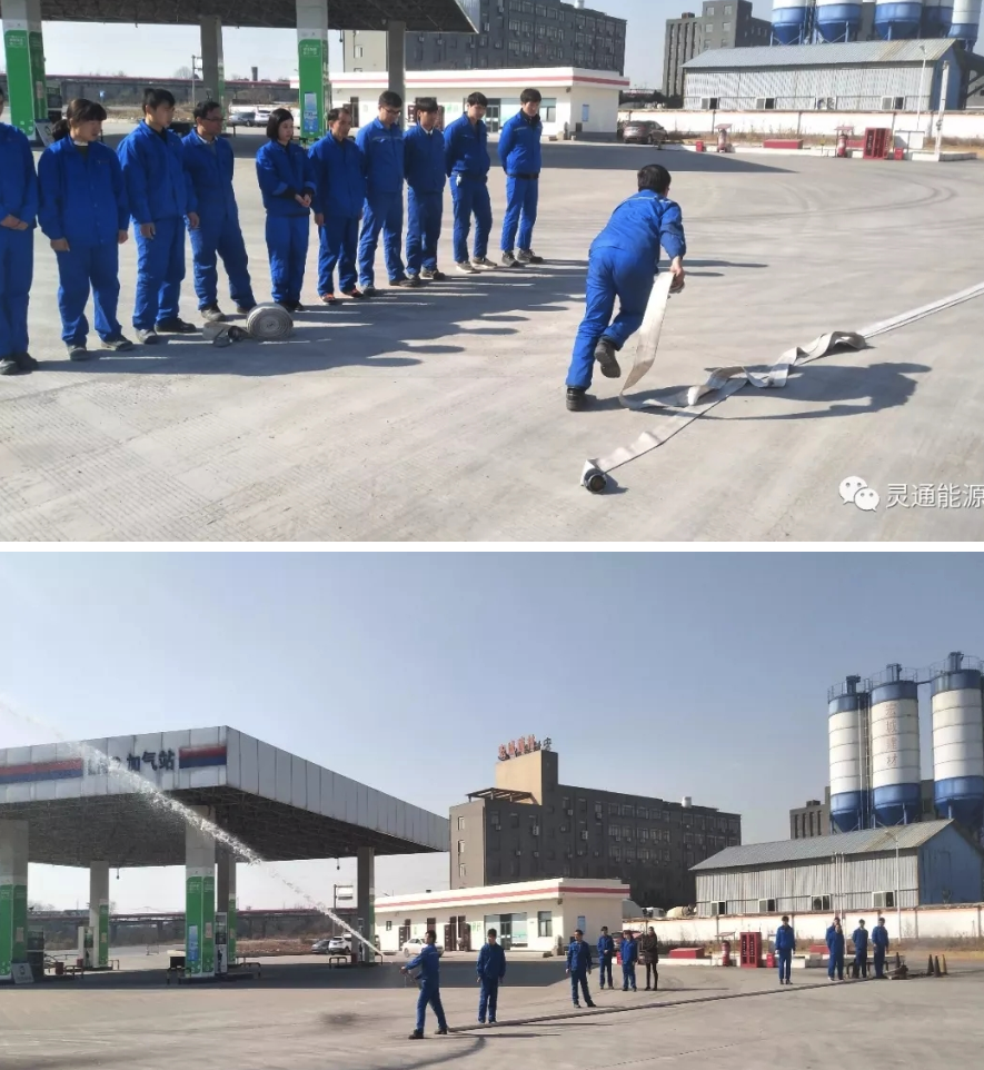 2017年12月25日,灵通能源组织各加油加气站点全体员工开展消防演练活动。