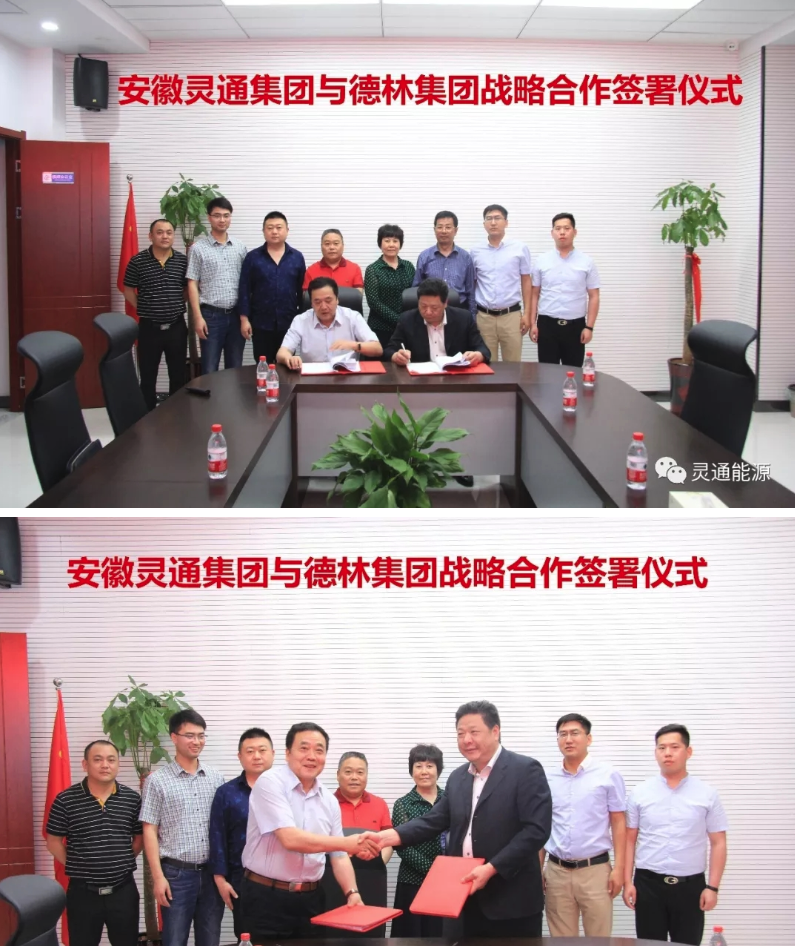 2018年4月2日德林集团总裁张斌仁、神木德林荣泽能源运营股份有限公司总裁白子荣一行来到灵通集团新办公楼参观考察,就接下来双方全面合作进行了深入洽谈,并签署了战略合作协议。