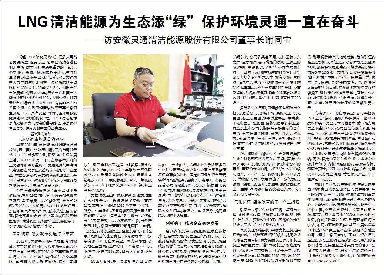 党的十九大报告中提出,要建设美丽中国,绿水青山就是金山银山的发展要求;今年的全国“两会”上,政府强调煤改气的重要性和迫切性,彰显出政府治理大气污染的决心。为配合党和政府的发展思路,配合引江济淮工程,全面布点规划。公司目前和上海、南京几家大型专业LNG企业已经达成共识,合作采购国外气源、利用现有沿海接收站,布局内河接收码头,共同发展终端客户,打造LNG供应全产业链,满足华东地区的用气需求。谢同宝说,“习总书记在民营企业座谈会上的讲话给我们注入强大的信心和动力,给民营企业带来发展的春天,公司将加大投资力度,积极推广清洁能源利用,服务好铜陵人民和企业,让铜陵的山更青,水更绿,天更蓝。”