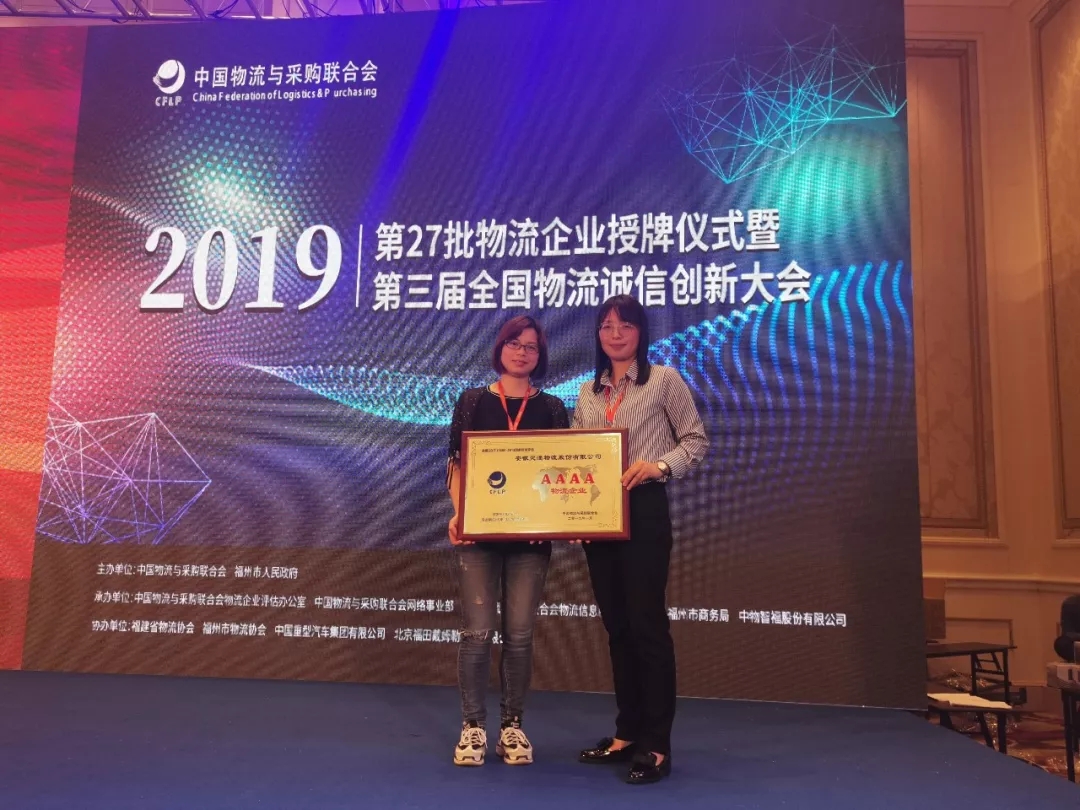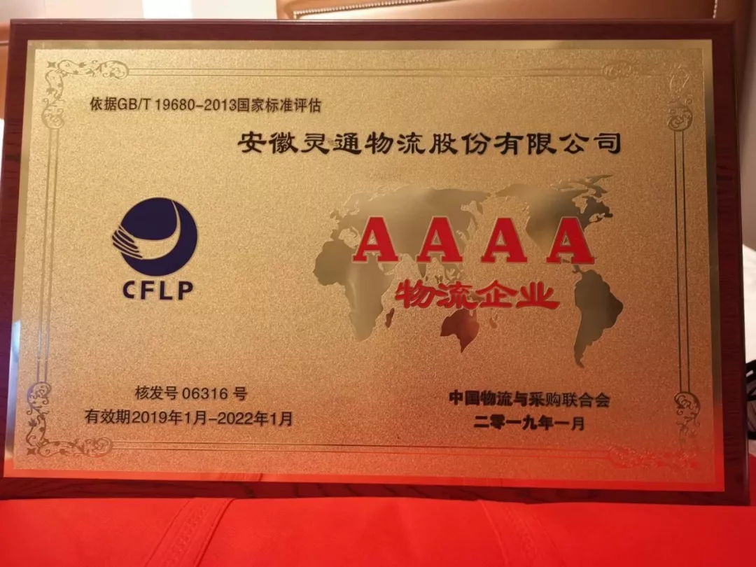 2019年3月27日-29日,由中国物流与采购联合会主办的第27批A级物流企业授牌仪式暨第三届全国物流诚信创新大会在福建福州市隆重举行。在本次大会中,安徽灵通物流股份有限公司(以下简称“灵通物流”)荣获「国家4A级物流企业」资质。这标志着灵通物流在管理体制、经营理念、运作模式等方面均达到了现代物流企业的先进水平。