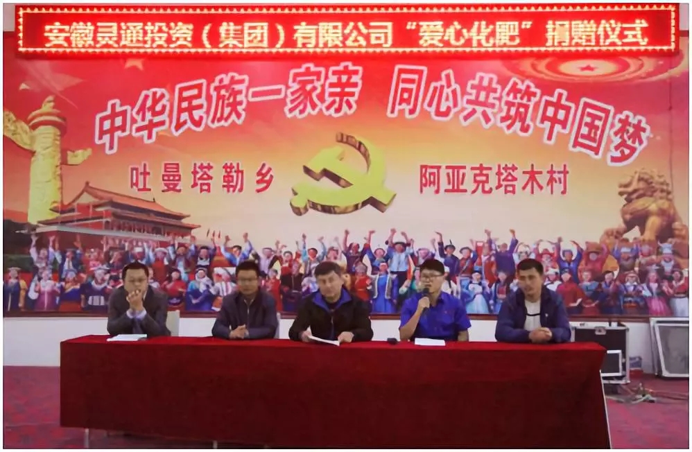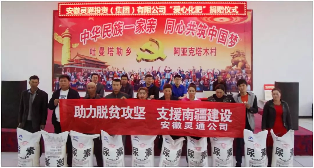 脱贫攻坚战全面打响以来,灵通集团积极主动作为,找准贫困人群需求点,精准发力,筹划开展各项扶贫活动,积极投身到脱贫攻坚热潮中。4月8日,灵通集团驻新疆办事处在麦盖提县吐曼塔勒乡阿亚克塔木村村民服务中心广场上,举行了以“翻越千山万水总关情 灵通助力脱贫在行动”为主题的“爱心化肥”助力脱贫攻坚捐赠仪式。