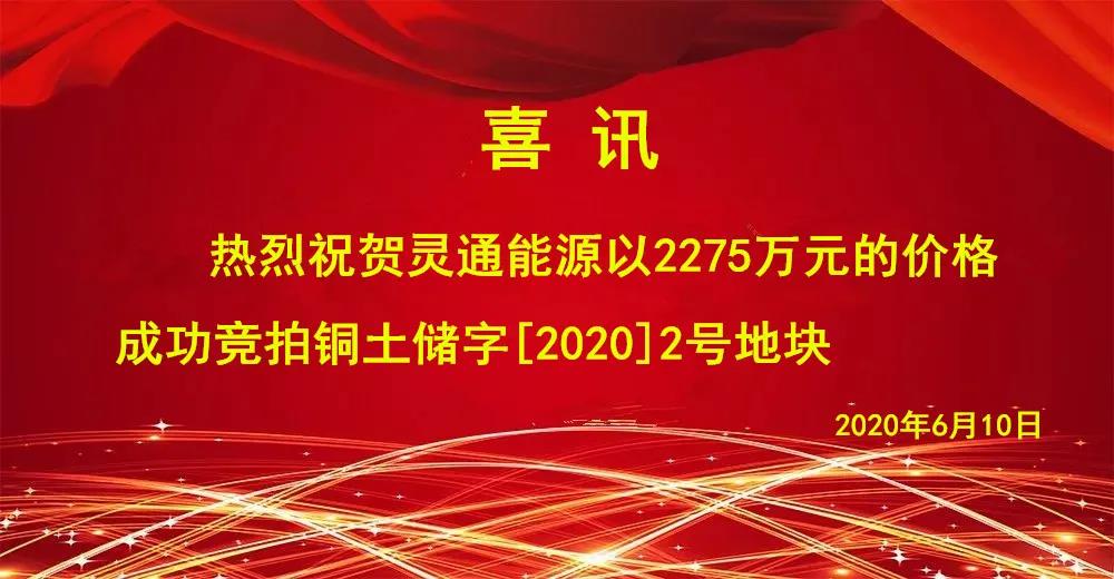 2020年6月10日,灵通能源成功取得铜土储字[2020]2号地块国有建设用地使用权,成交价格2275万元。集团董事长谢同宝、总经理吴德红参加竞拍,这标志着公司在位于经开区项目取得实质性进展,也标志着公司可持续发展走进了新时代。