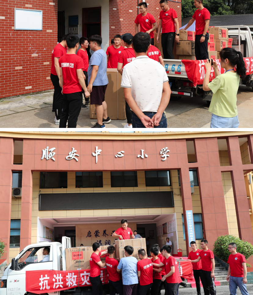 7月17日下午,在铜陵市义安区宣传部的对接安排下,灵通集团董事长谢同宝、总经理吴德红、义安区红十字会秘书长盛玲玲等一行乘坐满载爱心物资车辆前往董店中学、铜陵市第六中学、顺安中心学校、顺安中心学校(216小区)、义安区实验小学安置点发放爱心物资。