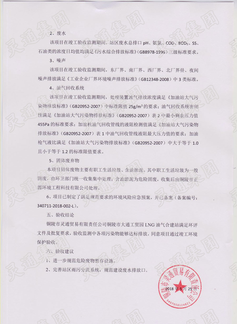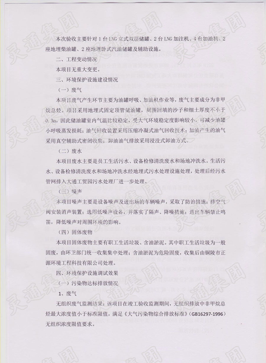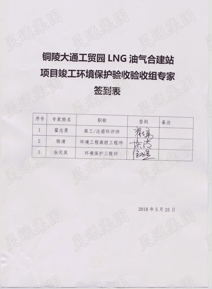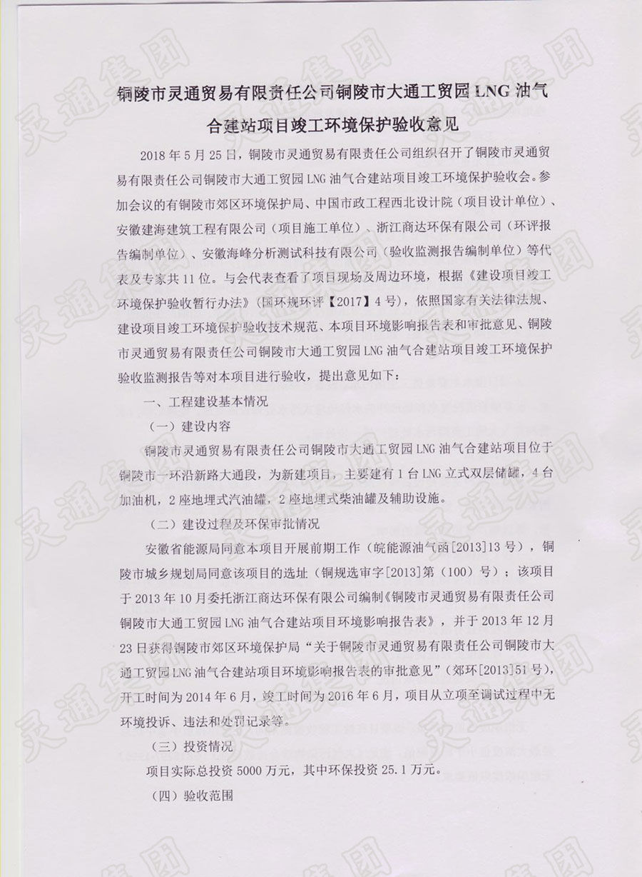 安徽灵通集团大通工贸园LNG油气合建站通过竣工环境保护验收