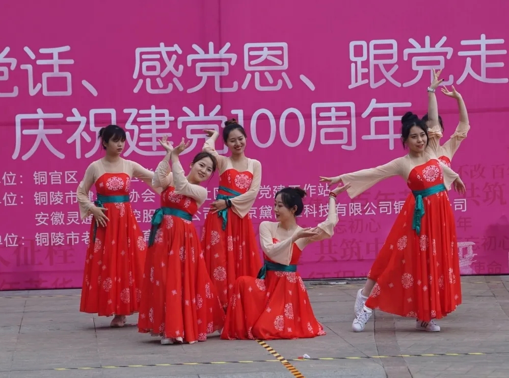 灵通集团职工的大合唱《我和我的祖国》拉开了活动的序幕,非公企业、协会健身球爱好者踊跃参与,纷纷用自己的方式向党致敬,灵通集团职工带来的舞蹈《燕无歇》将气氛推向了高潮。
