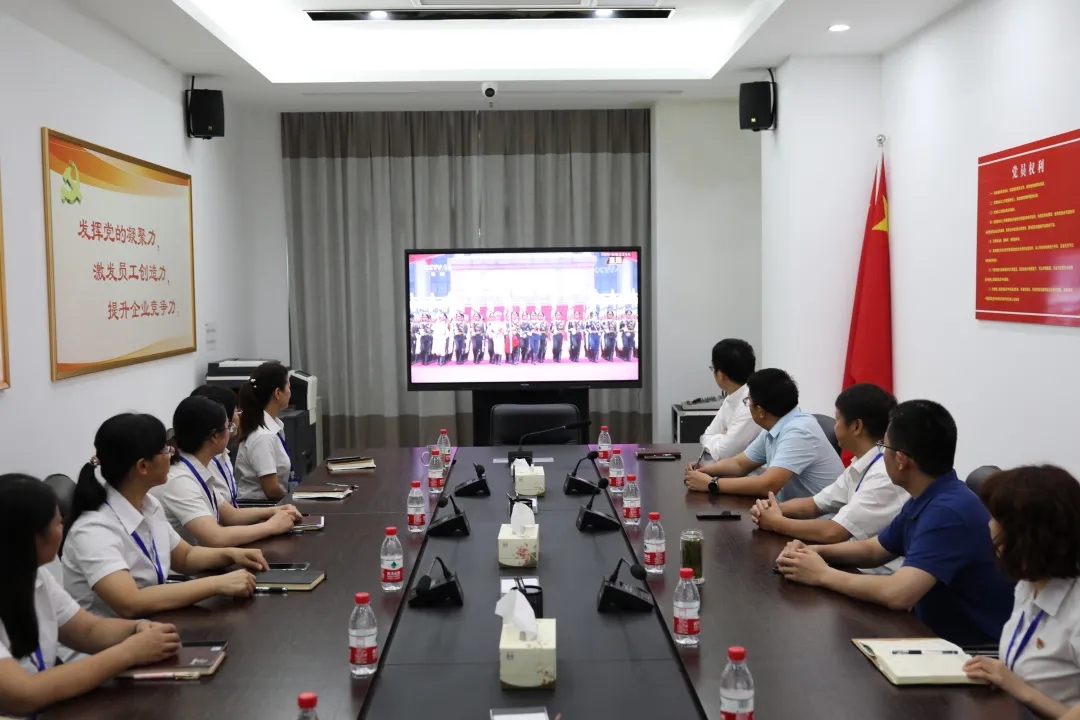 2021年7月1日上午8点,安徽灵通集团组织统一观看了庆祝中国共产党成立100周年大会直播,聆听了习近平总书记的重要讲话。