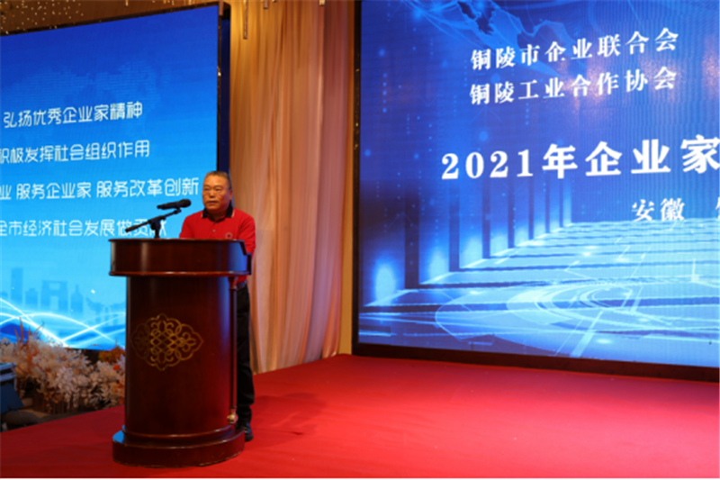 4月21日下午,铜陵市企业联合会、企业家协会、工业合作协会、工业经济联合会2021年企业家活动日暨年会在东宸大酒店顺利举办。市领导汪宜武、王纲根、孙中辉,老干部唐世定、佘恩有,经信局局长李勇等出席。作为轮值会长及会议主要赞助商,灵通集团董事长谢同宝出席并致辞。