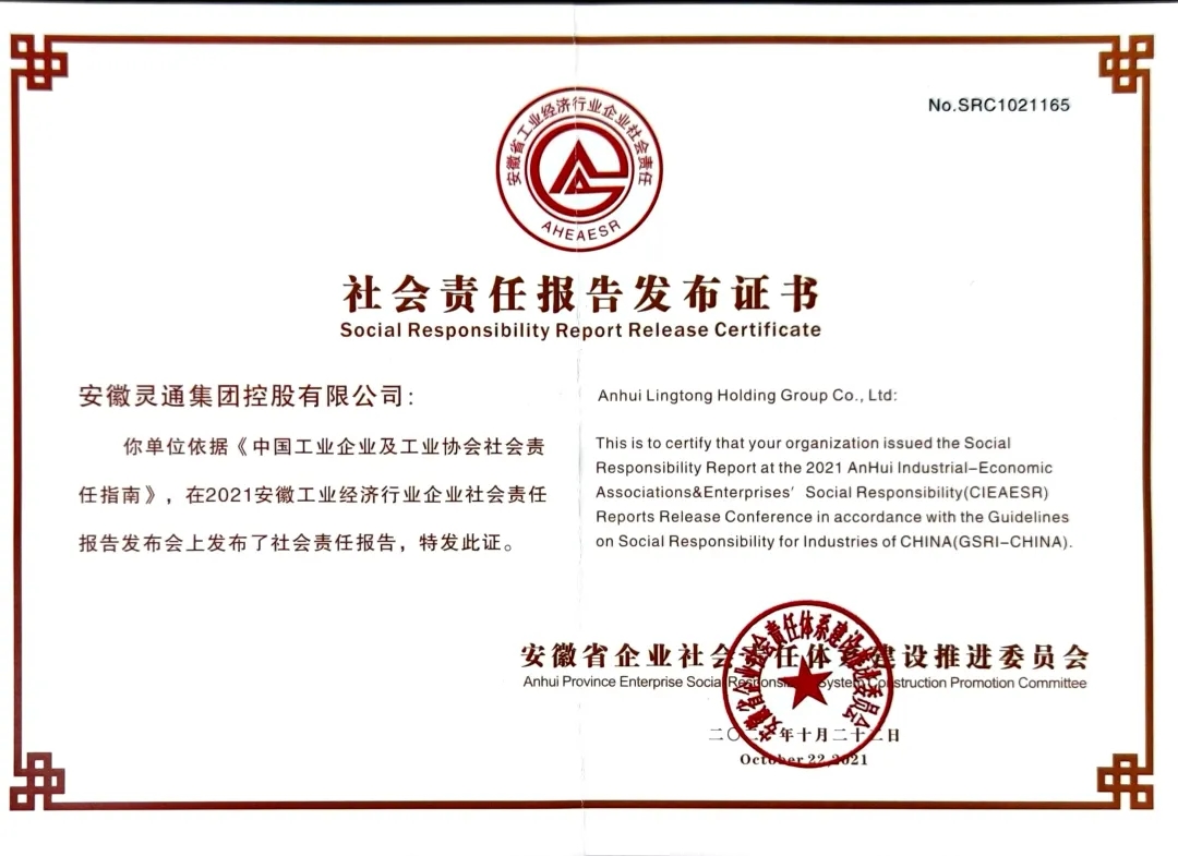 本届发布会上,我省有118家企业发布了社会责任报告,铜陵市共有3家,其中安徽灵通集团作为铜陵市唯一一家民营企业参与发布(另有铜陵有色金属集团及铜陵港航投资集团)。会议安排11位企业代表上台领取证书,董事长谢同宝代表灵通集团上台接受证书颁发。
