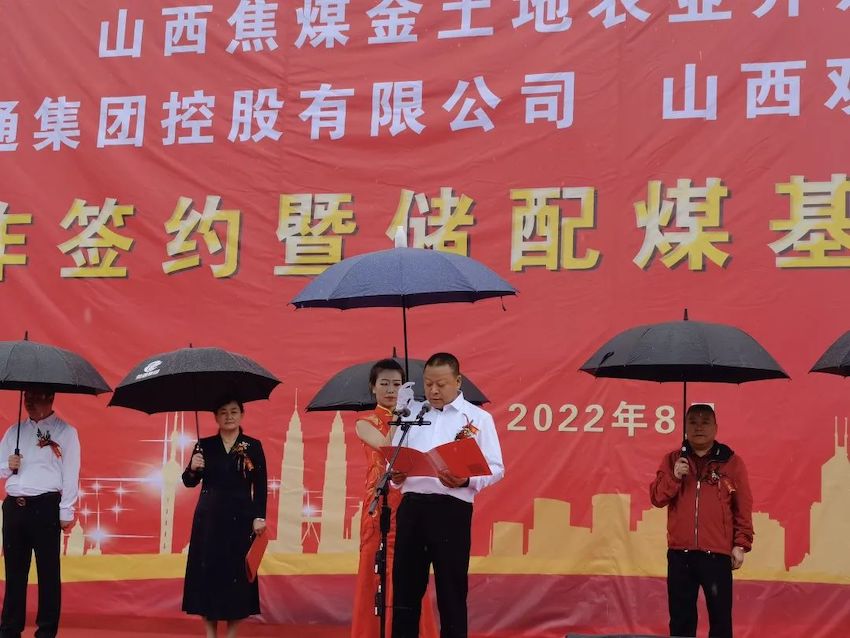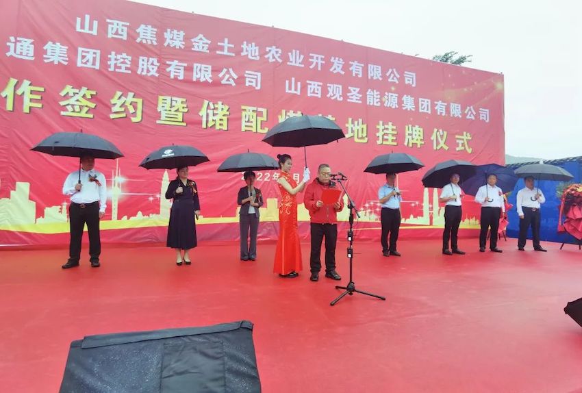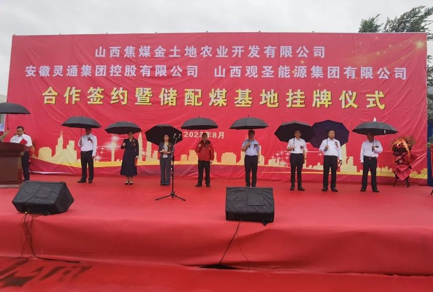 8月28日,山西焦煤集团金土地农业开发有限公司、安徽灵通集团控股有限公司、山西观圣能源集团有限公司签约暨山焦金土地储配煤合作基地挂牌仪式在古县举行。古县县长刘泳,常务副县长李晶,安徽灵通集团董事长谢同宝,总经理吴德红,山西焦煤集团金土地公司董事长赵高荣,总经理兰海奎,新疆泰华集团、山西观圣集团董事长李华,总经理张策等相关领导参加了仪式活动。