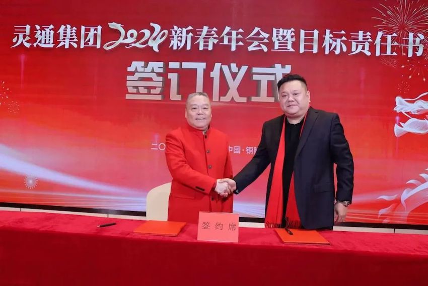 现场,董事长谢同宝、总经理吴德红分别与各职能部门负责人签订了2024年目标责任书,强化目标导向,分解目标任务,强化责任意识。一张张目标责任书犹如沉甸甸的“军令状”,象征着灵通集团凝心聚力开新局,吹响勇往直前的冲锋号,必将以破竹之势再创辉煌!