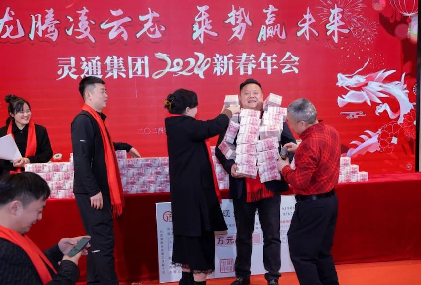 总经理吴德红在大会致辞中表示,在董事长的带领下,今年我们交出了一份无愧于各级党委政府、无愧于全体灵通人辛劳和汗水的答卷。365个昼夜的付出,凝聚着每个灵通人的梦想。驻外员工多年坚守,克服重重挑战;新疆团队骁勇善战,用智慧和汗水换回了喜人的成绩;财务部门严格把关,为业务团队保驾护航;办公室事无巨细、任劳任怨;安保团队不分昼夜、恪尽职守等,每个员工都是不可或缺的一份子。2024年,挑战和机遇并存,大家要做的是:能吃苦、能作为、能担当!